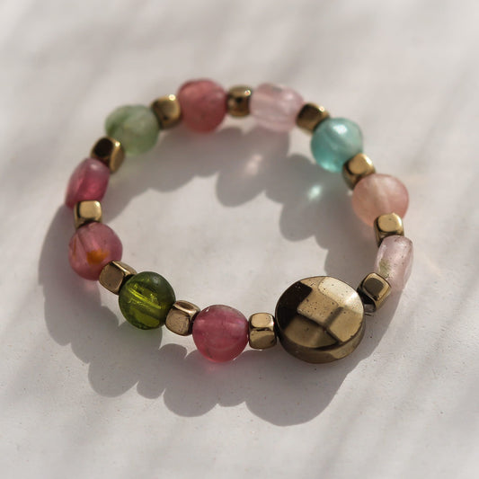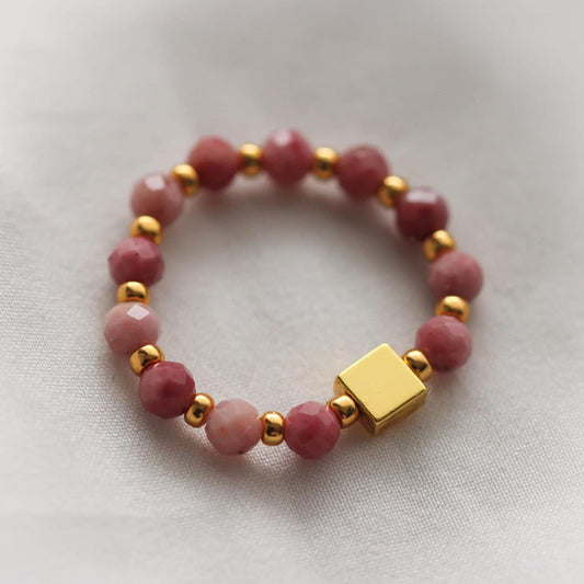 Boho Queen Ring, Rhodonit und Hämatit