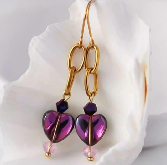 Herz Vergoldete Ohrringe mit Glaskristallen