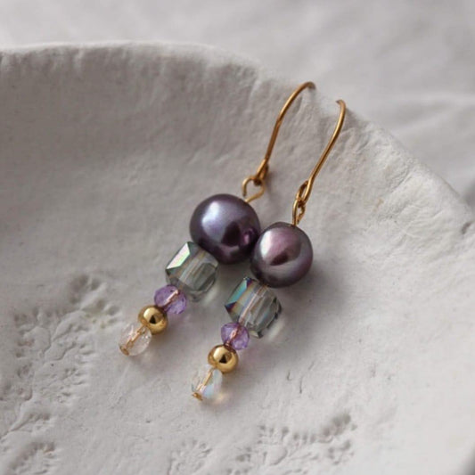 Violet Vergoldete Ohrringe mit Süßwasserperlen