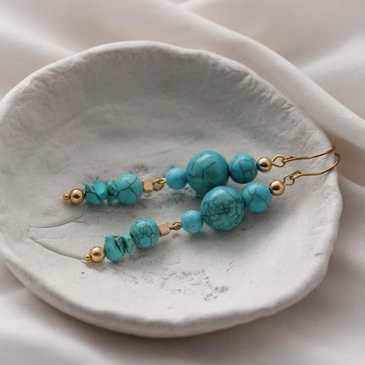 Arcana Vergoldete Ohrringe mit Türkisen, Hämatit und Howlith Steinen