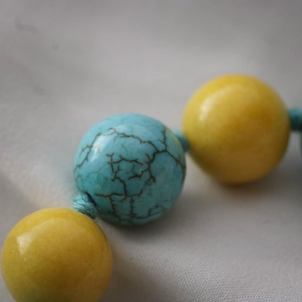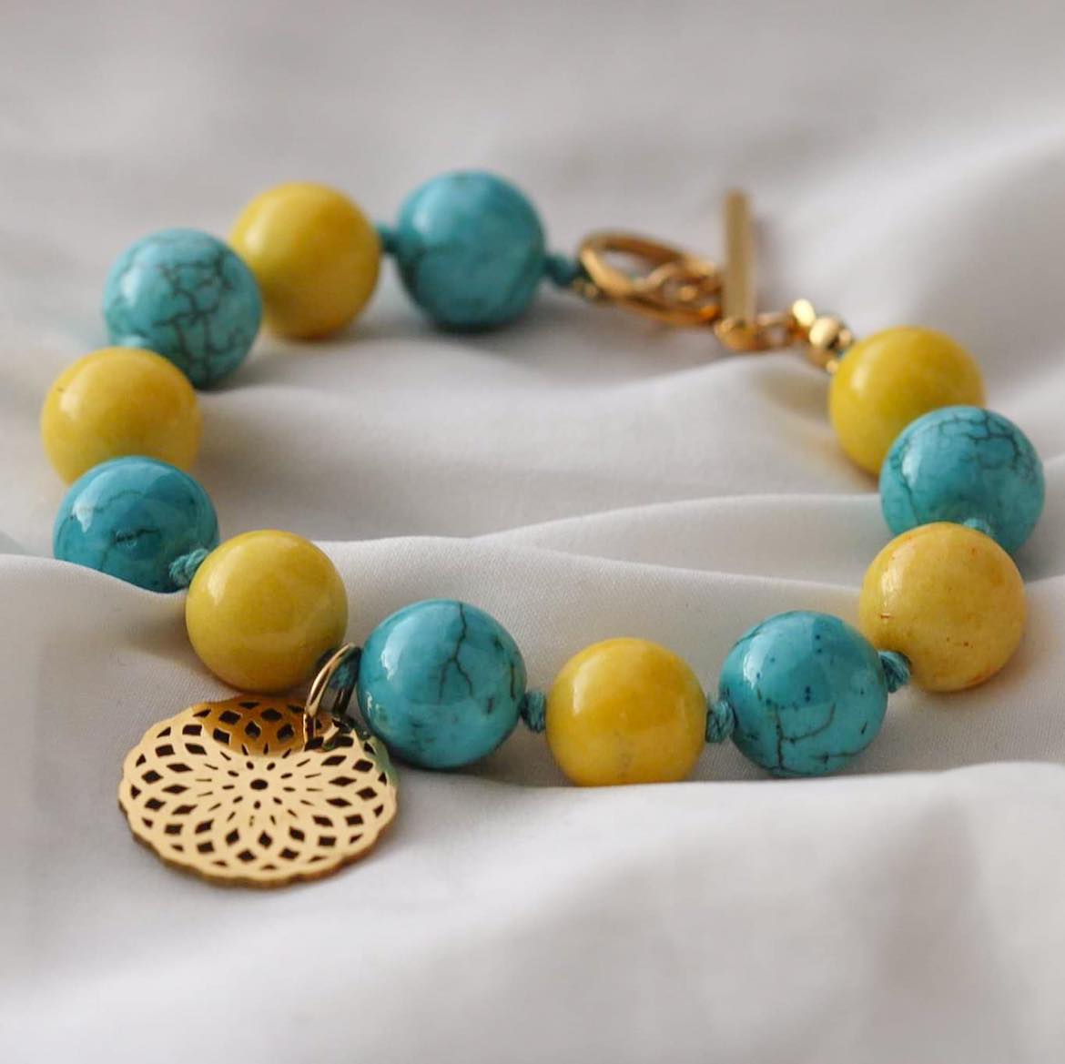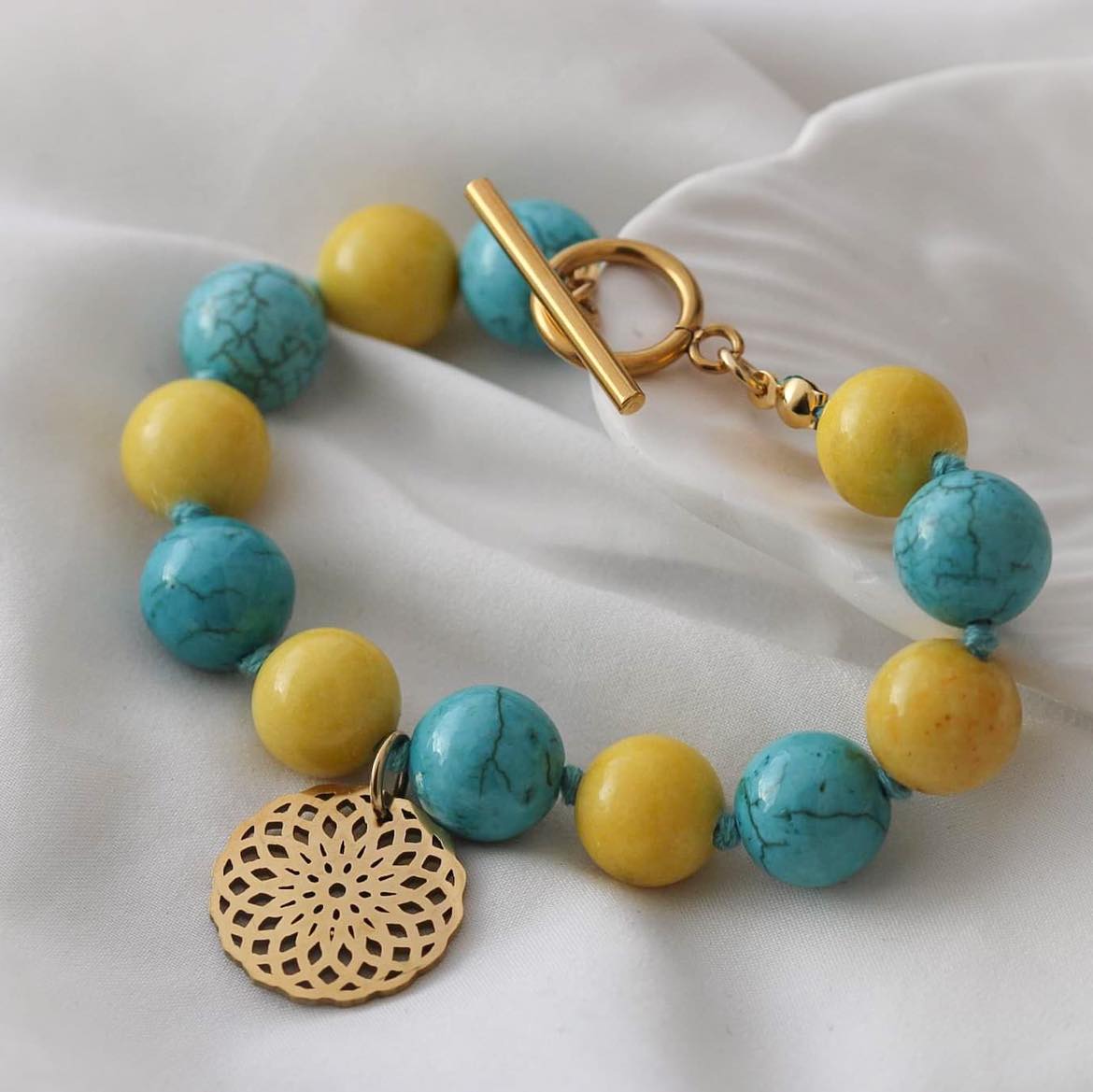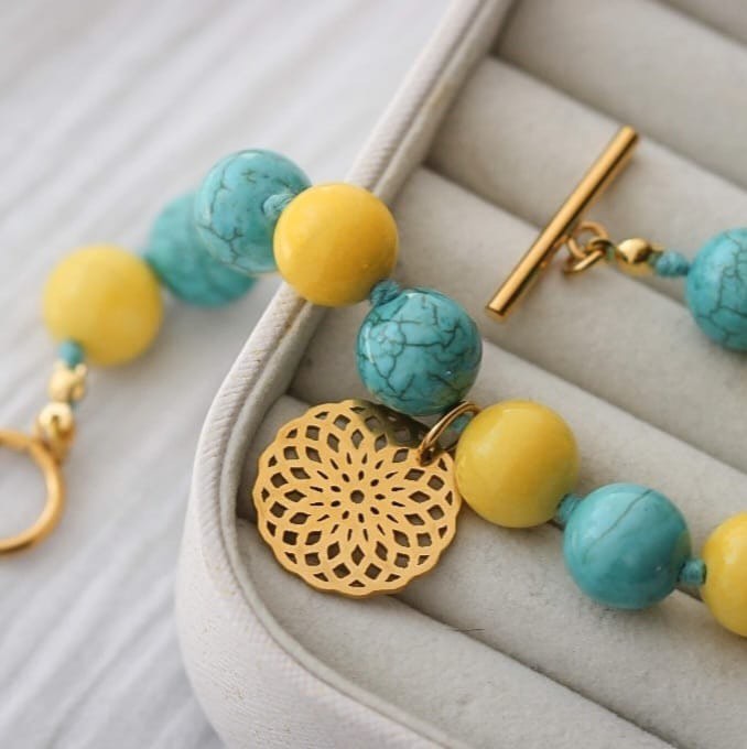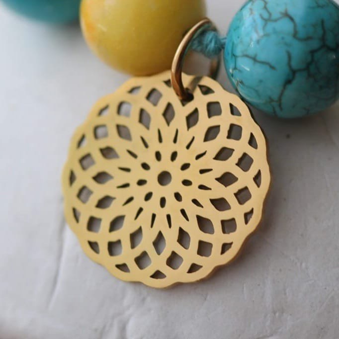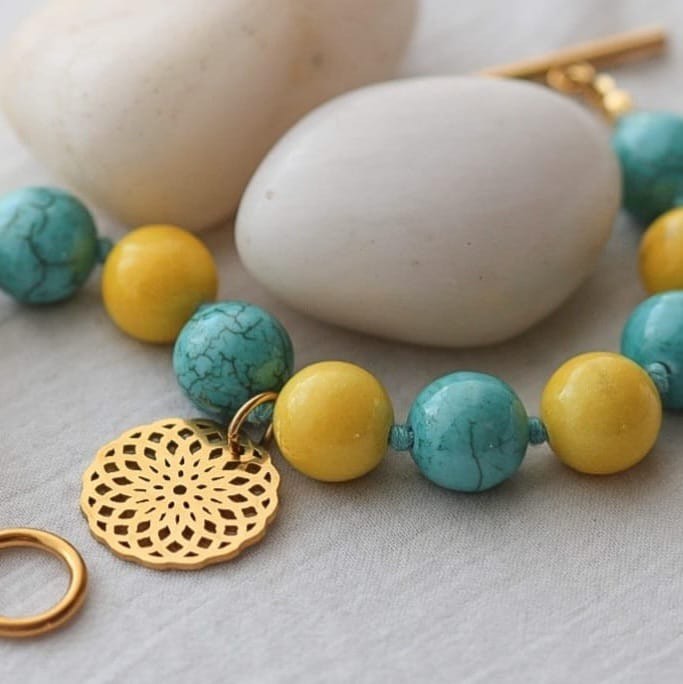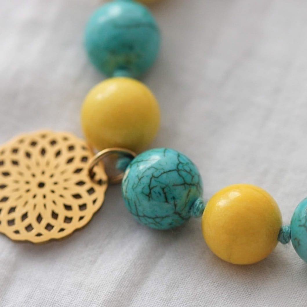 Armband aus Howlith und Marmor Steinen mit Mandala Anhänger