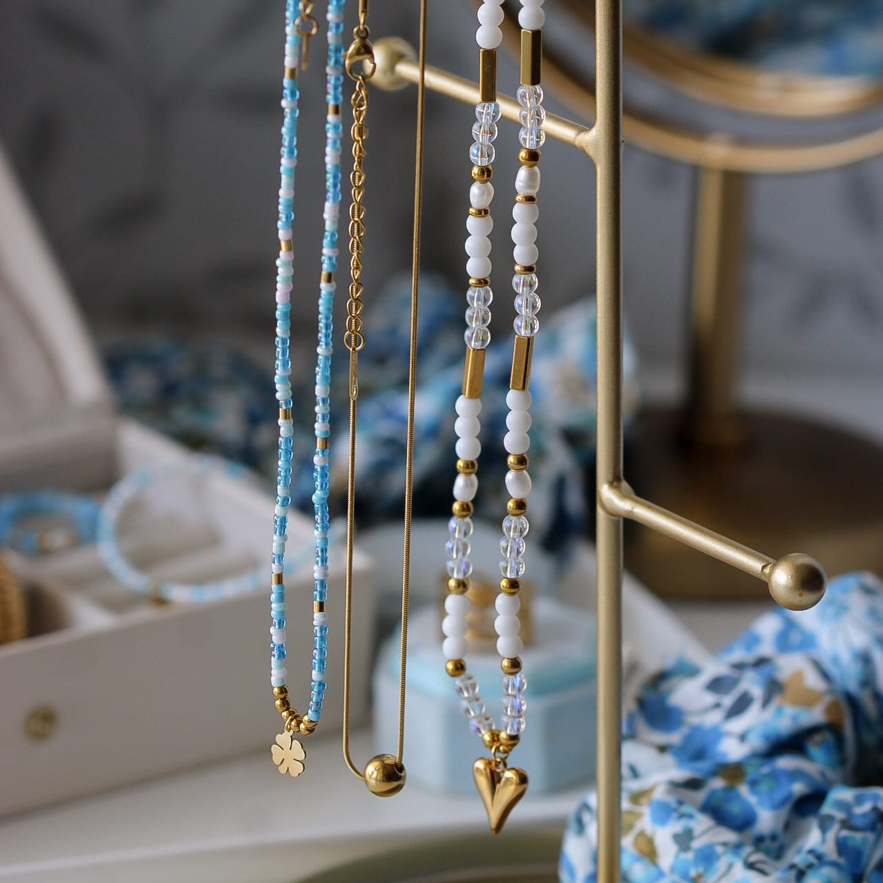 Zarte Pastellblau- und Goldtöne sorgen für einen frischen, modernen Look.