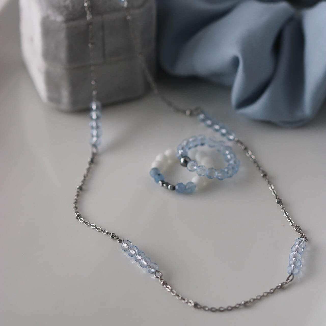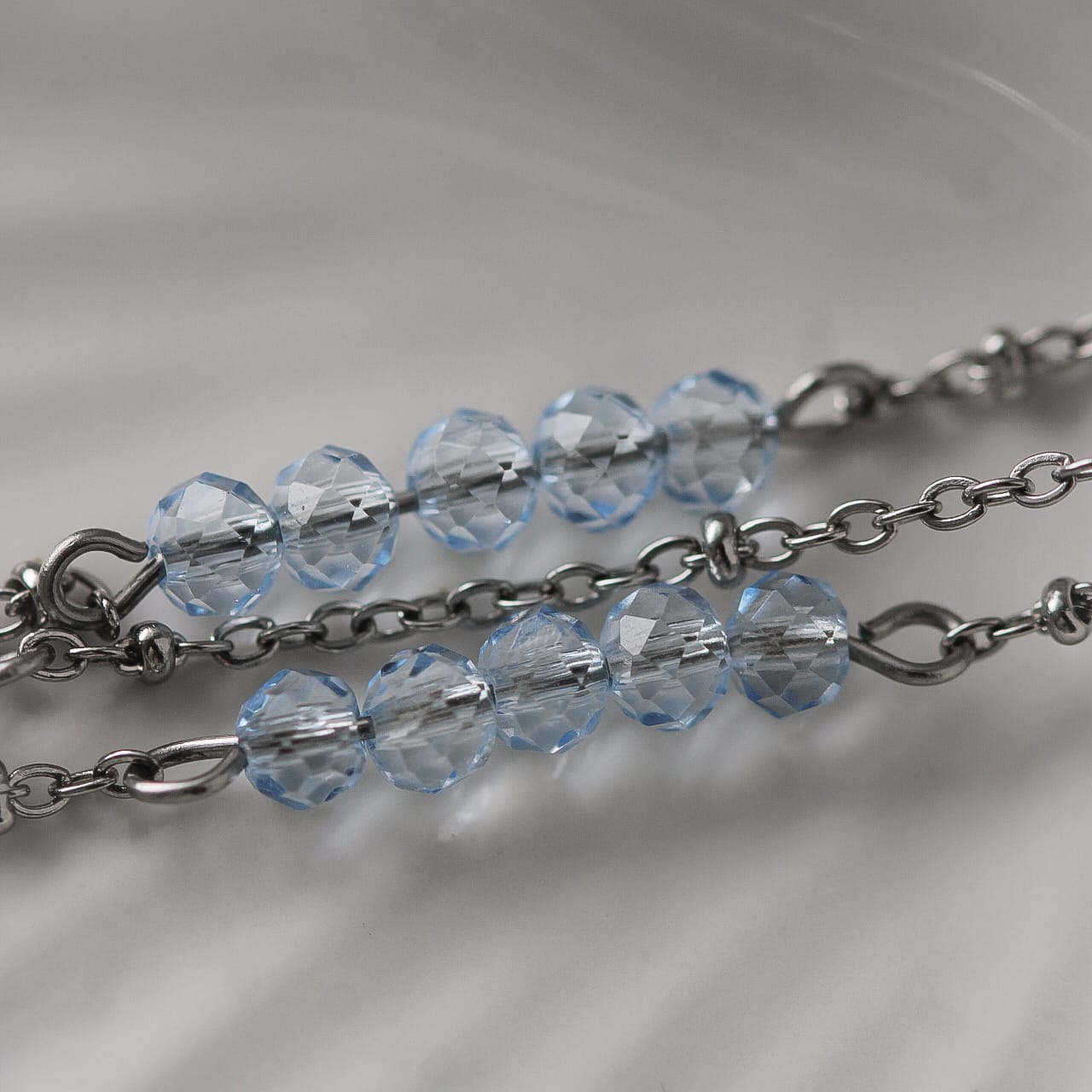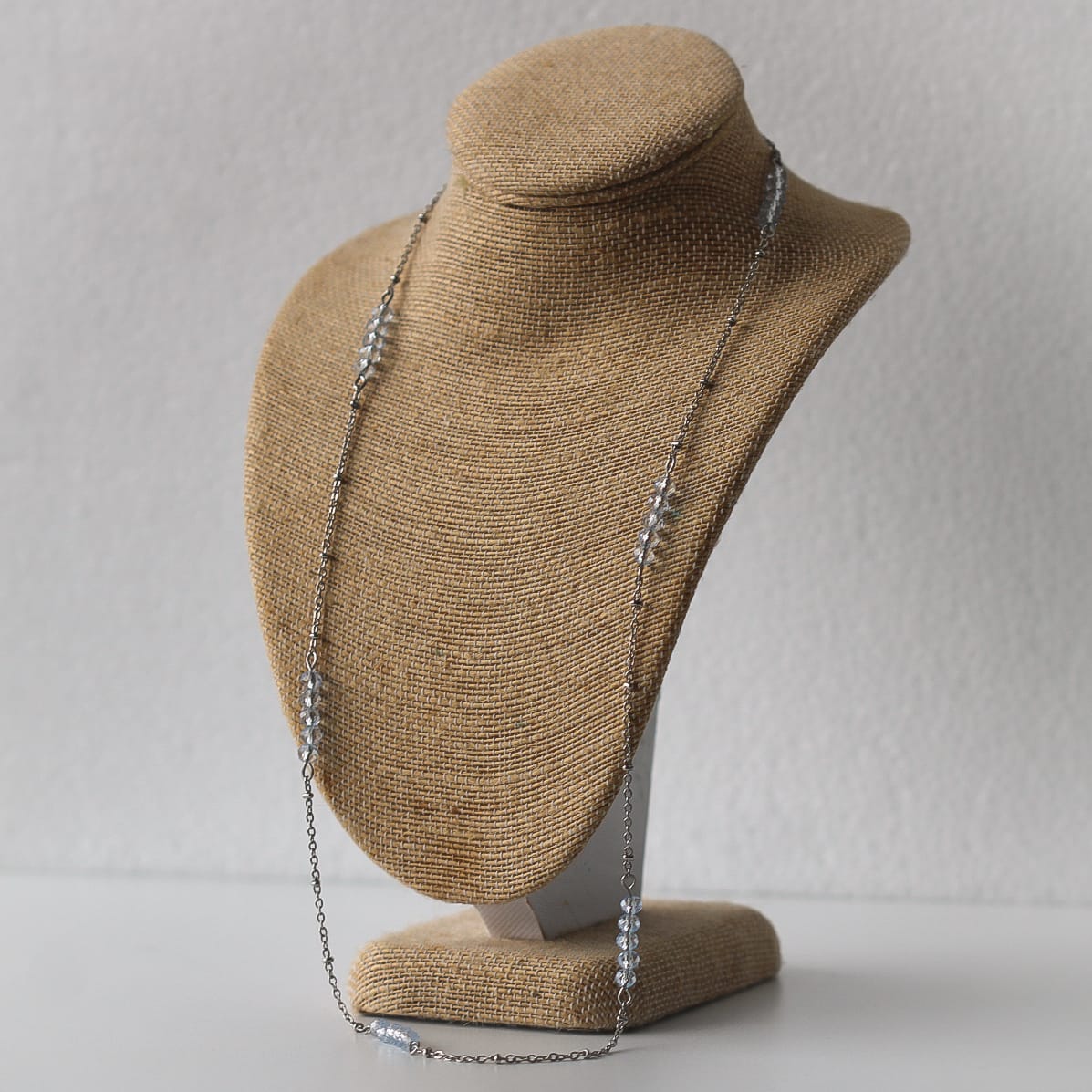 Halskette aus hochwertigem Edelstahl mit funkelnden hellblauen Glaskristallen. Die schöne Silber-Blau-Farbkombination wirkt frisch und feminin. Durch das lange Design lässt sich die Kette vielseitig kombinieren und passt perfekt zu Alltag und besonderen Momenten.
