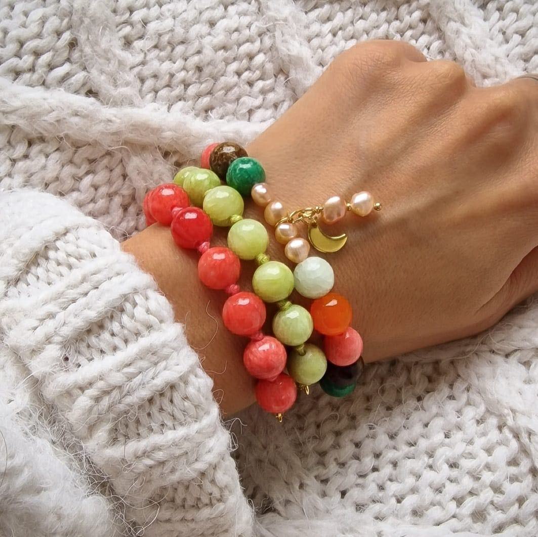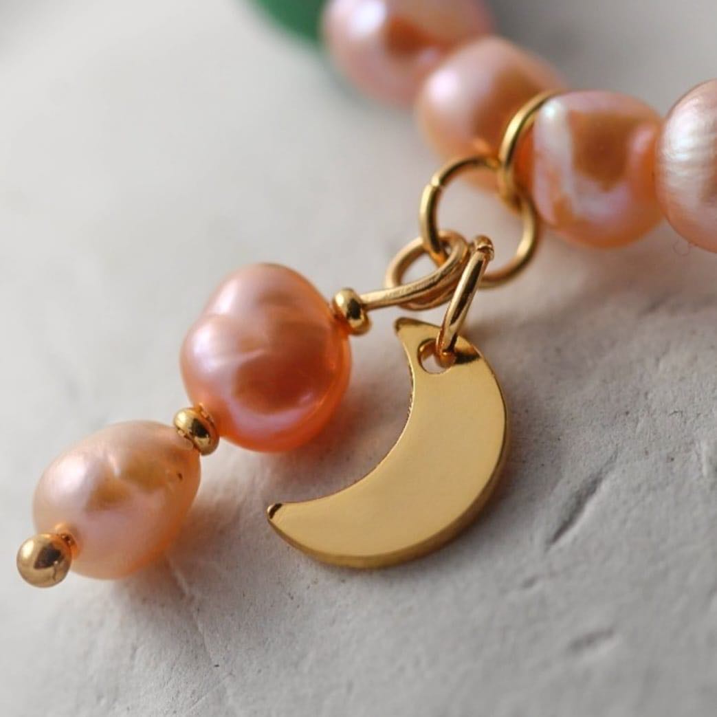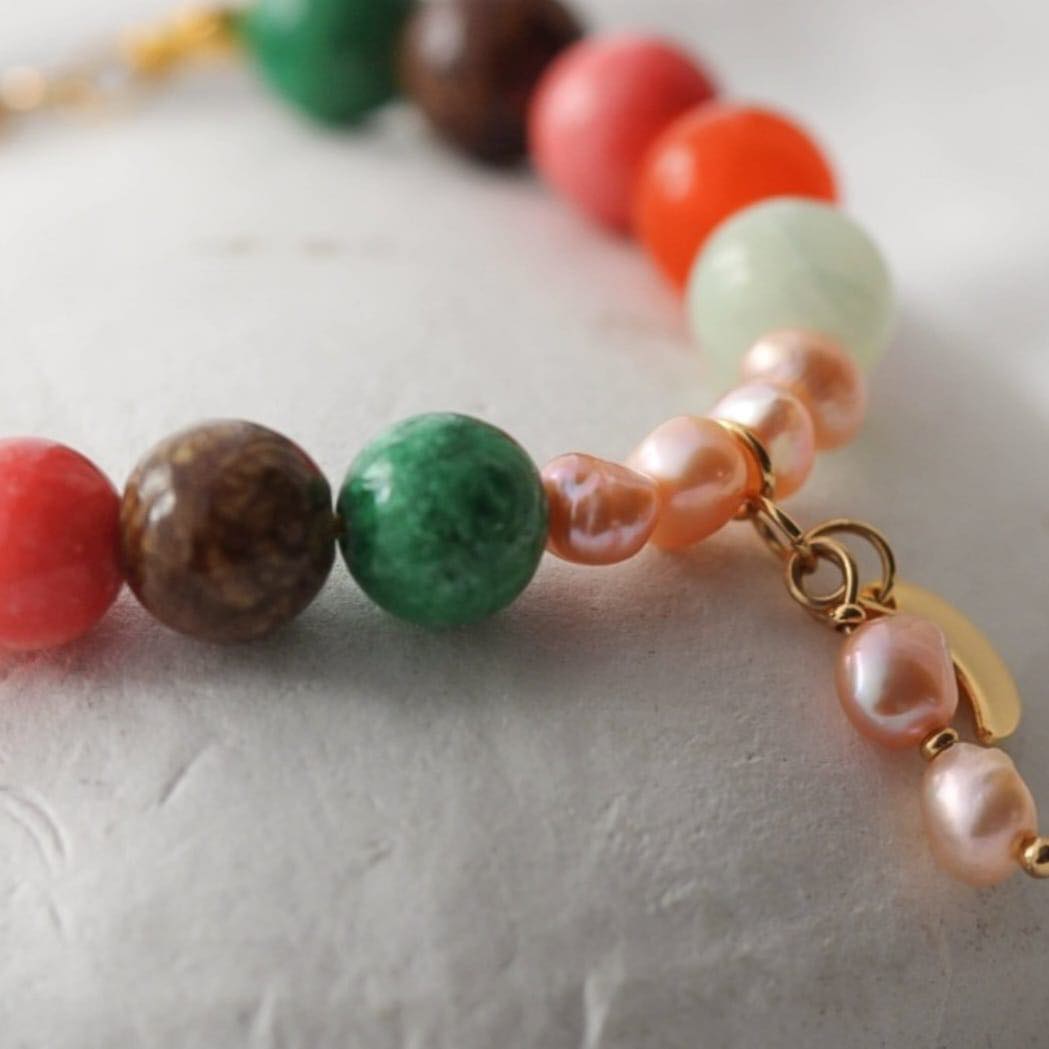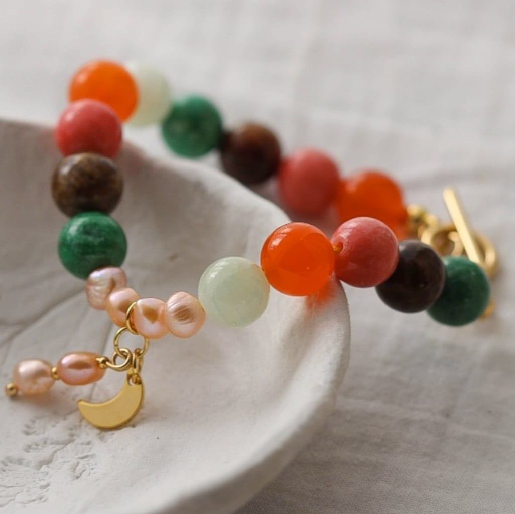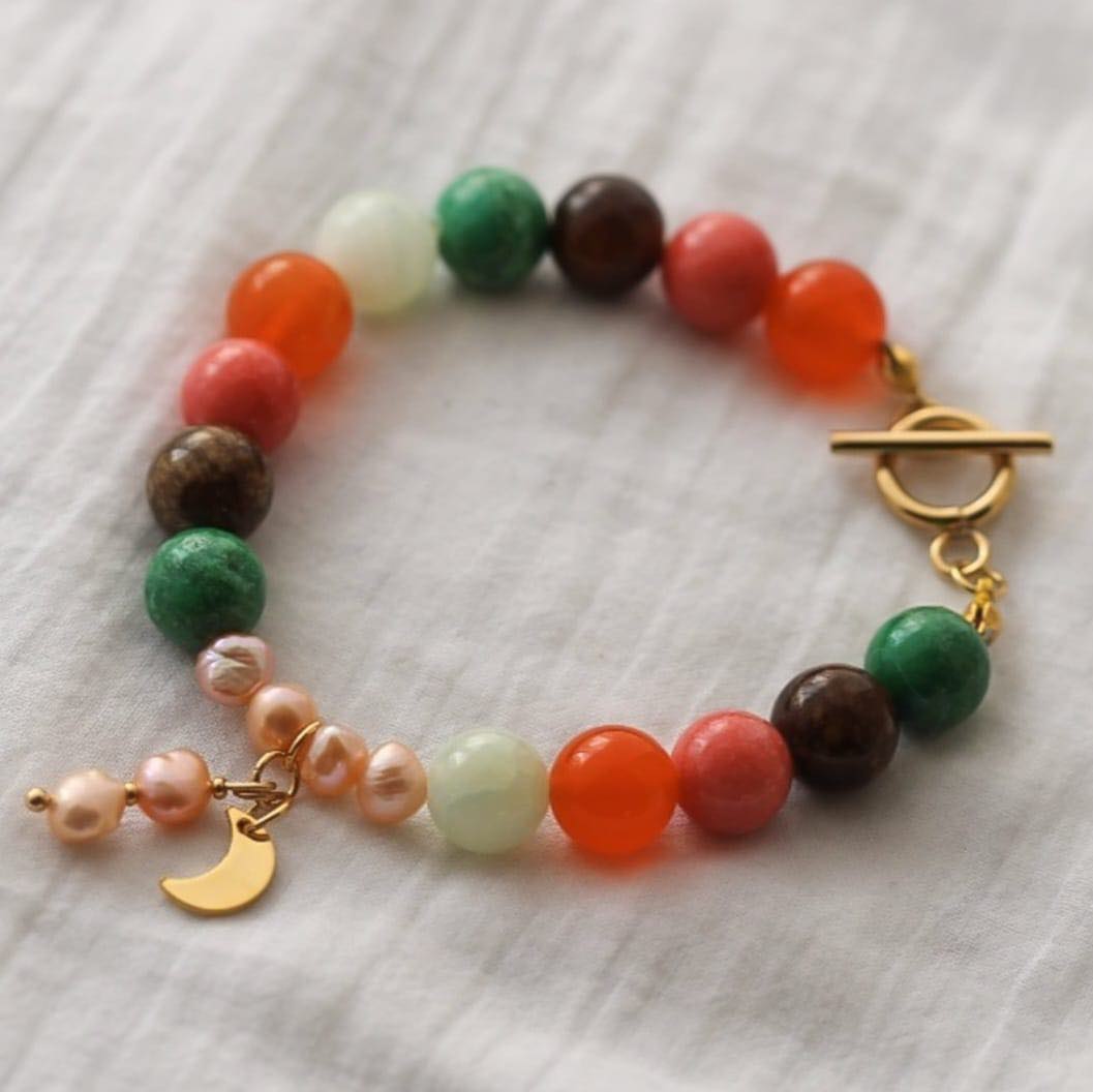 Mond Armband aus bunten Marmor Steinen und Süßwasserperlen
