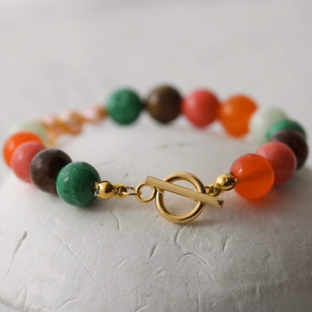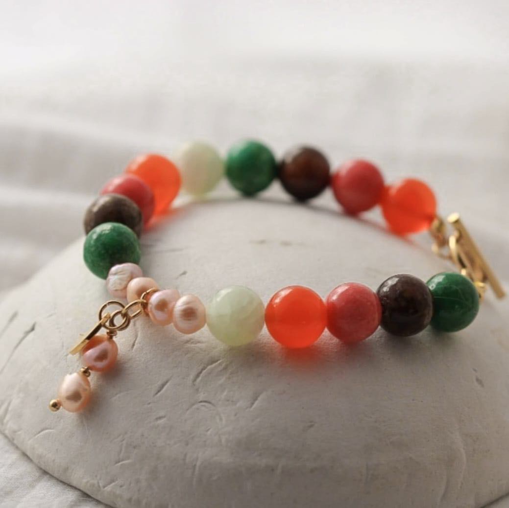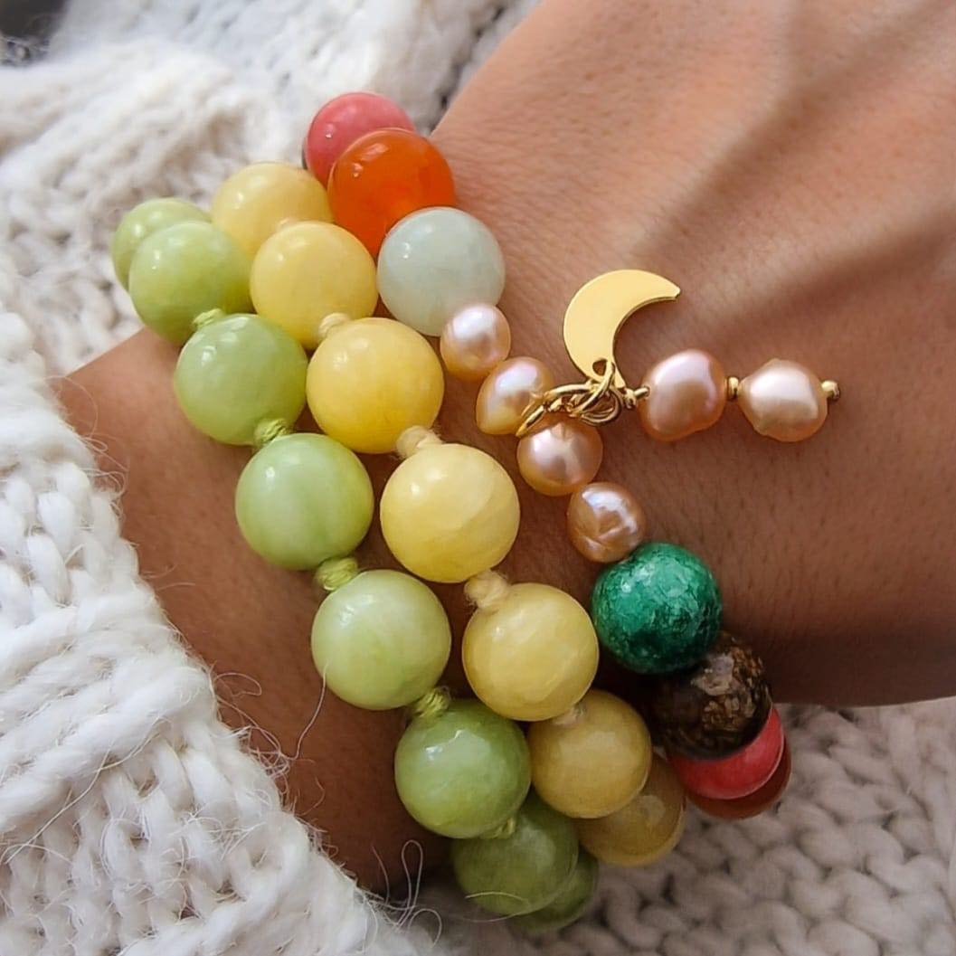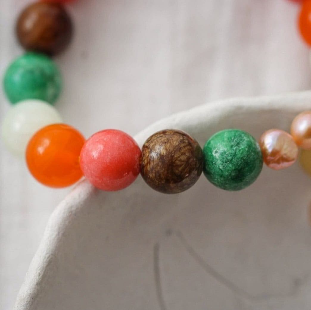 Mond Armband aus bunten Marmor Steinen und Süßwasserperlen