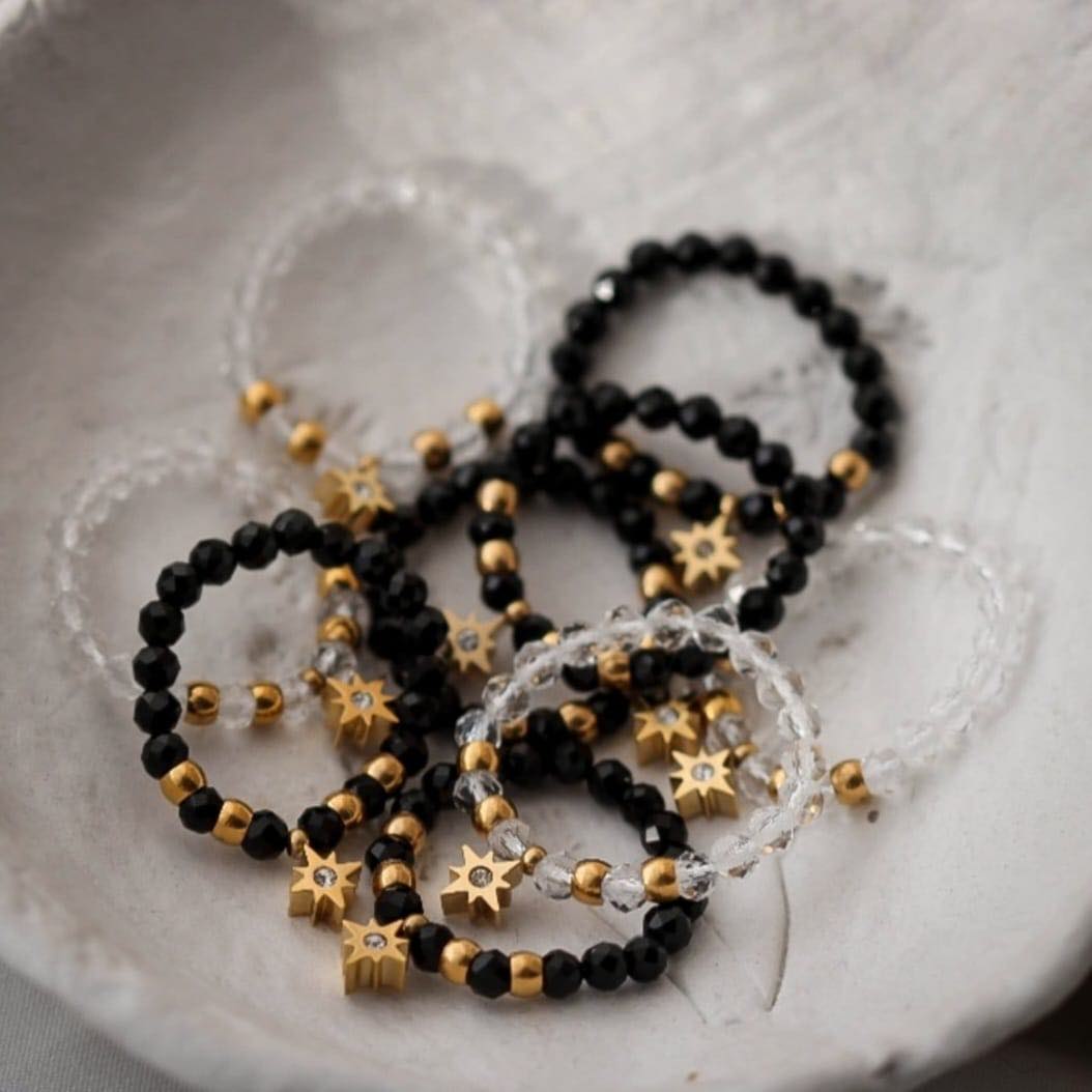 Unser Stella White Ring besteht aus Bergkristallen und verfügt über einen kleinen Anhänger. Er wurde aus 18 Karat vergoldetem Edelstahl gefertigt und ist mit funkelnden Schmucksteinen, darunter Bergkristall und Zirkonia, verziert.